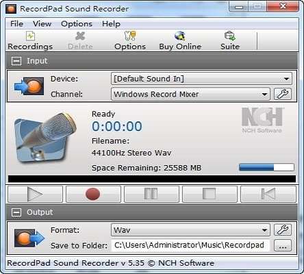 RecordPad官方版是一款非常好用的电脑录音软件,RecordPad最新版可以录制各种音效,或是麦克风的声音,将其保存成MP3,WAV,AIFF等格式的文件,在几分钟之内你就可以开始录音,保存,回放文件,RecordPad官方版可以被保存到硬盘和使用快速燃烧到CD刻录软件创建一个音频CD。