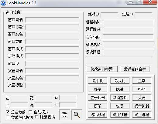 LookHandles(句柄查看器)官方版是一款可以适用于对任何程序的指定句柄进行捕捉查看的小工具。LookHandles(句柄查看器)最新版可以让你自由的捕捉任意指定程序位置,根据相应的逻辑获取句柄信息。LookHandles(句柄查看器)官方版还可查看窗口和控件句柄、类名、标题、风格等信息。