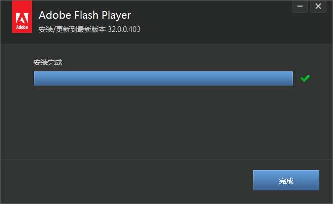 4.点击完成,Adobe Flash Player软件安装成功