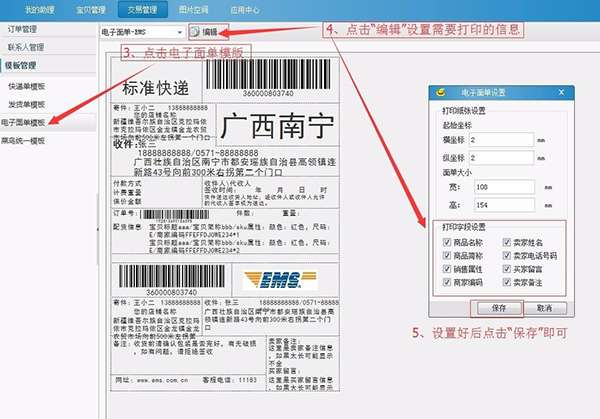 6、淘宝助理可批量打印快递单、发货单,省下大量人工填写工作,还可以自定义打印模板。