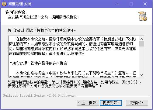 2、阅读淘宝助理授权协议,点击“我接受”即可