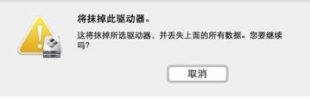6、再接着就会看到如下界面了,询问用户是否要抹掉此驱动器(U盘),这里我们选择点击【继续】即可。