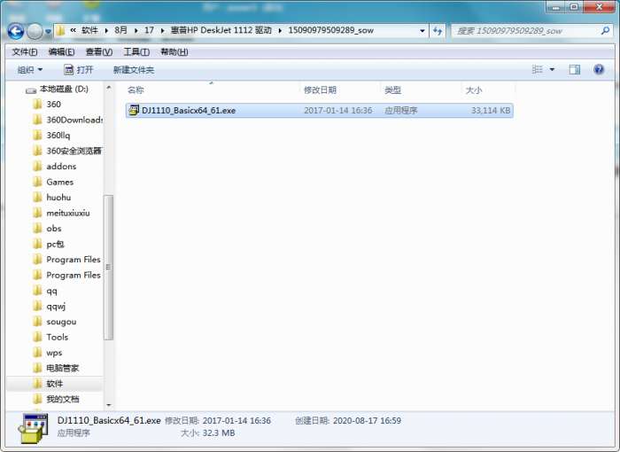 2.解压惠普HP DeskJet 1112打印机驱动软件,运行“EXE.文件”