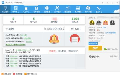 小编推荐:第五代店宝宝软件能为网络商户提供各种网店相关的服务管理功能,如:产品中心、订单管理、店铺管理、宝贝管理等。另外还有店大侠网店管理软件、久久晴天网店装修助手推荐给大家下载使用。