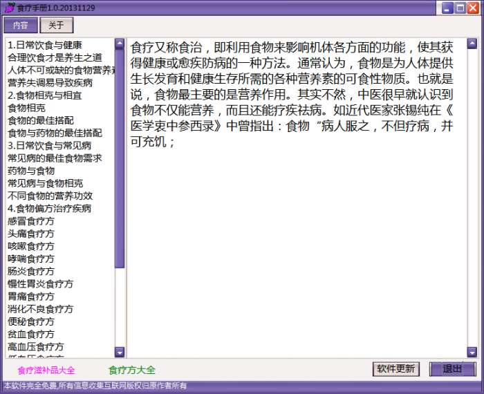 3.双击打开,进入食疗手册软件界面