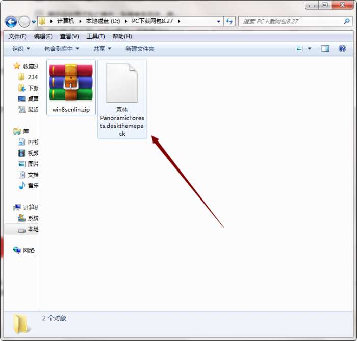 1、在华军软件园将微软官网windows8系统森林主题包下载下来,然后解压到当前文件夹中,双击其中的森林PanoramicForests.deskthemepack。