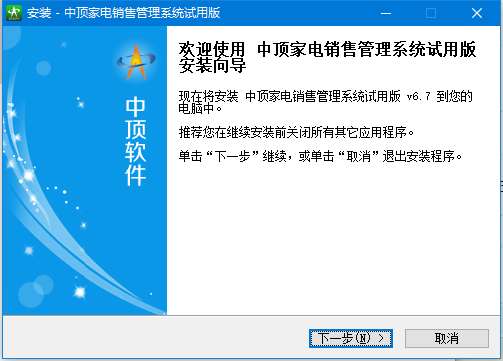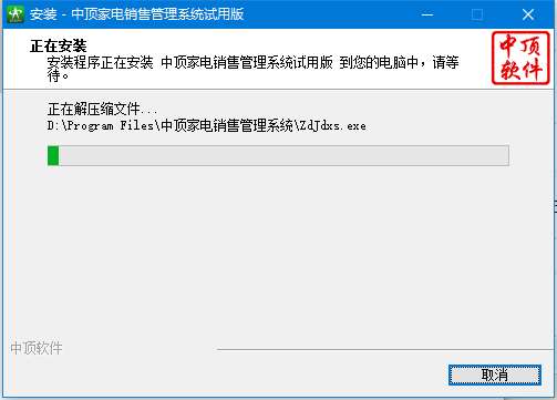 中顶家电销售管理系统官方版正在安装,耐心等待一下