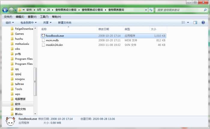 2.解压食物营养成分查询软件,运行“EXE.文件”