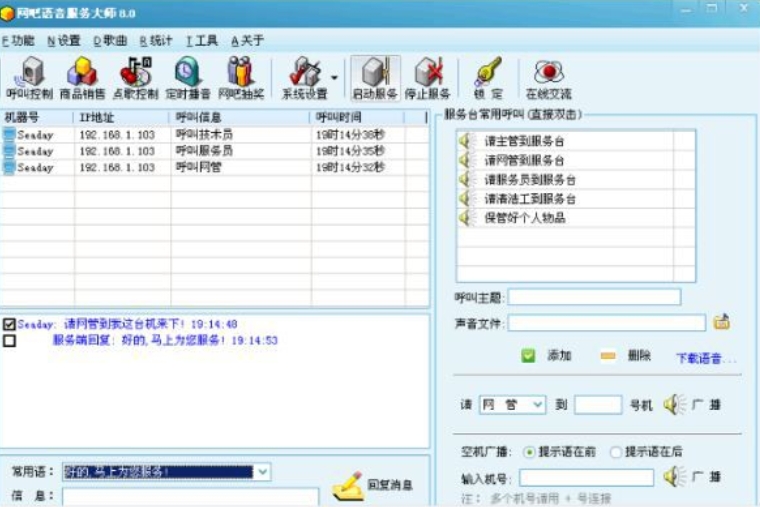 可以满足网吧所有语音呼叫的需求、网吧点歌的需求、网吧售货的需求、网吧抽奖的需求。