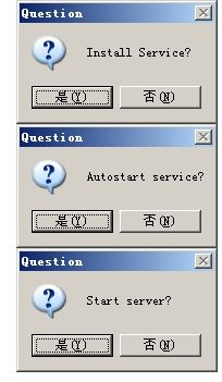 这是安装FTP服务的提示,Install Service (安装服务)和 Autostart Service(自动启动) Start server (启动服务器) 都点 是 就可以了。