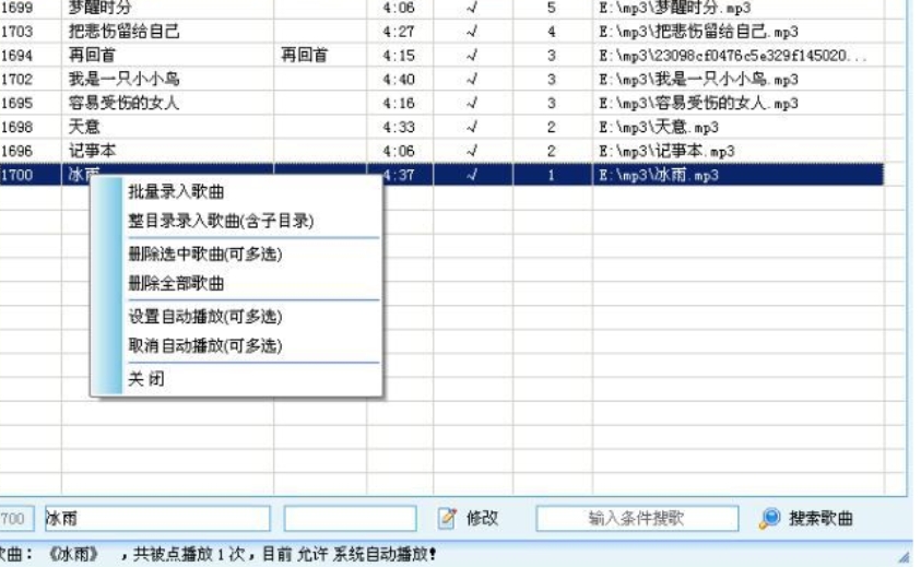 -- 自动播放歌曲即网吧背景音乐,服务端可以设置允许哪些歌曲自动播放,不允许哪些歌曲自动播放