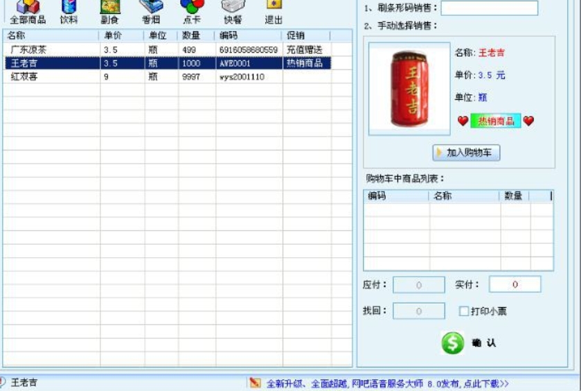 集销售/库存功能于一体,可以打印小票,使用条码枪,有商品促销功能,有详细查询报表,及图片显示,数据导出,语音通知等实用功能。