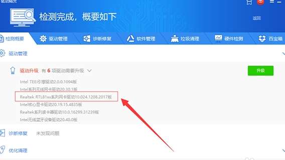 2、检查结果几分钟就出来了,然后可以查看电脑的网卡、声卡、显卡驱动问题,点击查看需要更新的驱动