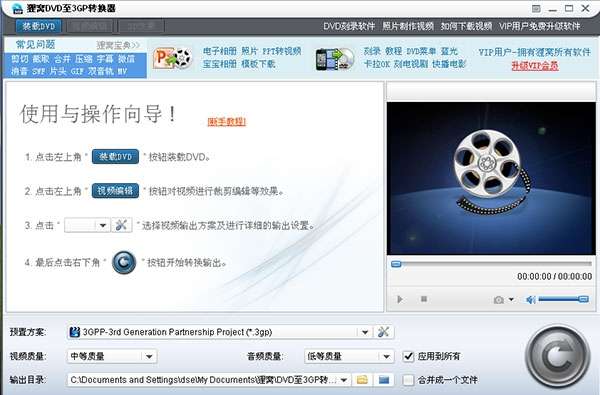 1、破解读取DVD碟,转换DVD为3GP格式;适用各类3GP机、智能手机、PSP机。并可选择DVD碟字幕及声道。