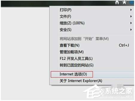 3、选择Internet选项