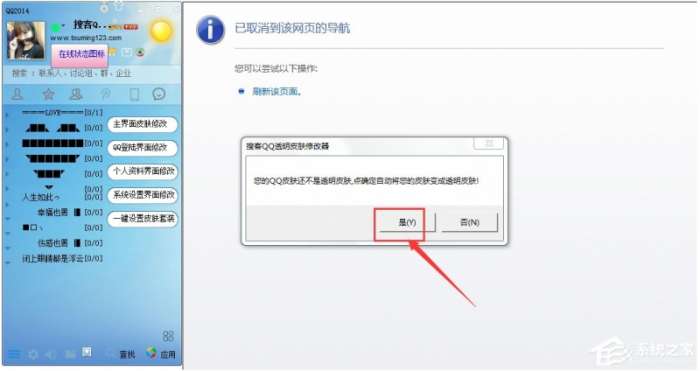 一、qq上换肤的图标不见了,怎么找回来,然后再换成透明的呢?