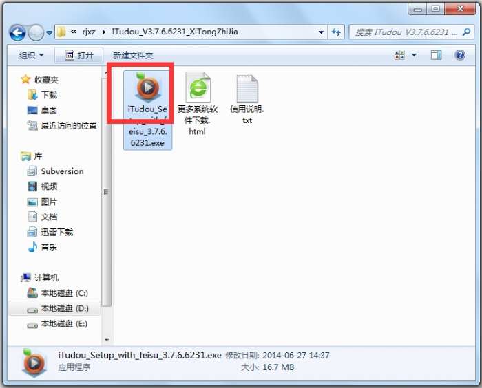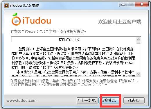1.从本站下载后解压,双击安装程序iTudou_Setup_with_feisu_3.7.6.6231.exe