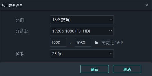 启动喵影工厂,选择比例并选择“新项目”。通过选择“文件”>“项目参数设置”,可以自定义项目的比例、分辨率和帧率。