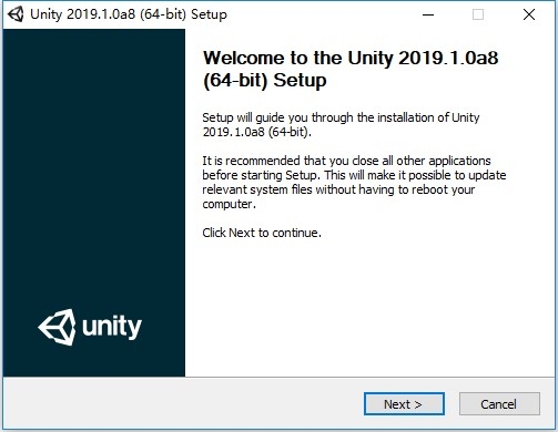 1、下载数据包然后解压双击“UnitySetup64.exe”点击“next”