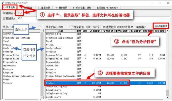 c) 下方“文件清单”会显示目录内的重复文件和所在目录信息。