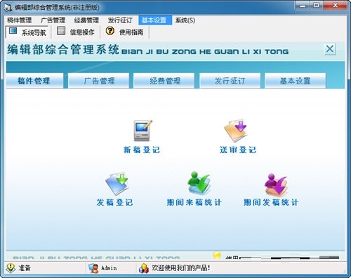 宏达编辑部综合管理系统官方版是一款美观易用、功能强大、十分实用方便的编辑部管理软件。宏达编辑部综合管理系统官方版为用户朋友们提供了稿件管理、广告管理、经费管理、发行征订和基本设置功能。通过宏达编辑部综合管理系统最新版大家可以轻松快捷的进行管理。