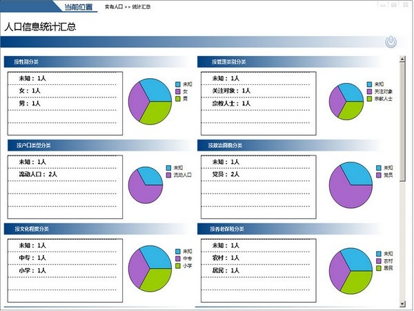 3 人口信息管理:对人口的基本信息、工作信息、社保信息、计生信息、等,进行了全方位的管理。