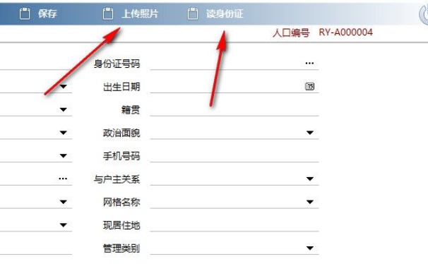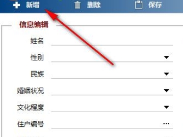 3、如图所示,小编点击人口管理,显示信息编辑界面,可以在这里添加社区人口信息