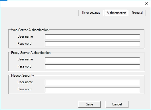 7、如图所示,在authentication(身份验证)界面,设置web server authentication(web服务器身份验证)、proxy server authentication(代理服务器认证)、mascot security(mascot 的安全)