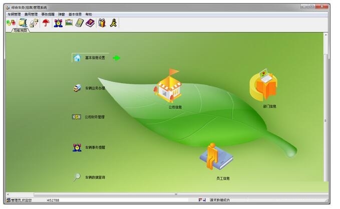 本系统共设有五个功能模块:基本信息设置、车辆业务办理、公司财务管理、车辆事务提醒、车辆数据查询。系统提供了完备的车辆管理功能,是车辆挂靠单位的理想选择。