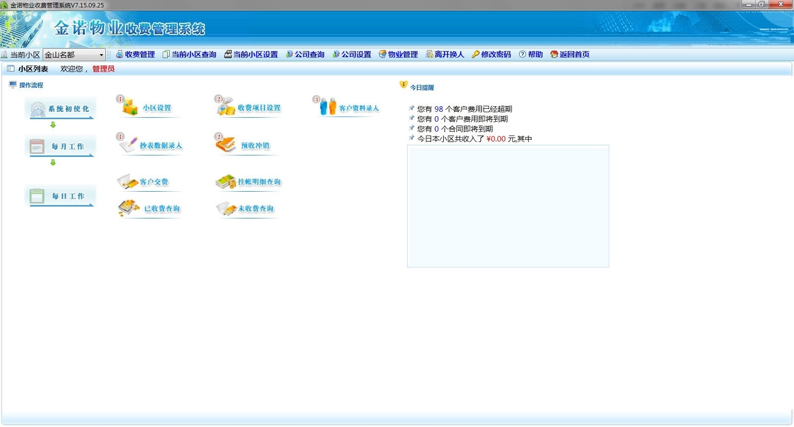 一套软件支持多个小区,不同小区用权限加以限制访问。管理人员则可以很方便的在不同小区间切换,查看各种数据