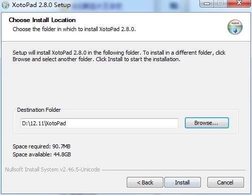 4、对软件的安装位置进行选择,默认位置“C:Program Files (x86)XotoPad”,建议安装在D盘,点击Install;