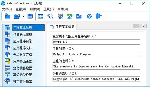 2、PatchWise Free中文版的界面简单易懂,易于浏览。对于易于遵循的过程,您可以使用向导并按照几个简单的步骤操作。因此,您可以在项目时编辑信息(应用程序名称和版本,项目描述和注释,版权声明标记)和作者(姓名,电子邮件地址,个人主页)。
