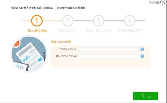系统安装完成后,需要进行系统初始化注册。初始化注册的过程,即通过纳税人识别号从税务机关系统获取最新的企业信息,保存到本地扣缴端的过程。