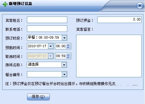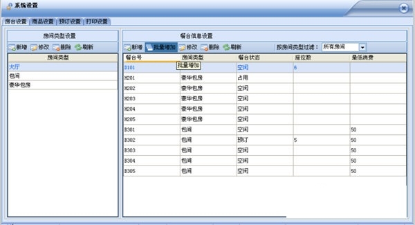 点击右侧餐台信息设置下的【新增】按钮,启动增加餐台信息窗口