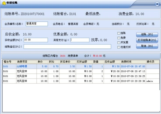 在导航菜单上点击【顾客结账】按钮,启动结账窗口