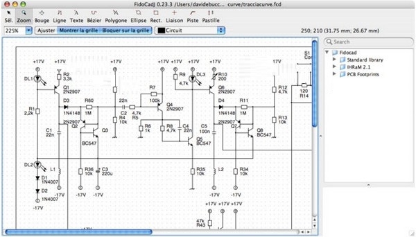 FidoCadJ最新版是款针对电力工程师们所打造的专业原理图绘制工具。FidoCadJ官方版采用java开发的电气原理图绘制工具,可以绘制电气图,绘制的图形可以导出多种格式,例如pdf、Eps、PGF for LaTeX,SVG、PNG 和 JPEG等。FidoCadJ还提供了丰富实用的绘图工具,包括贝塞儿曲线、多边形、样条曲线、矩形以及PCB导线等,可以方便用户快速绘制出完美的原理图。