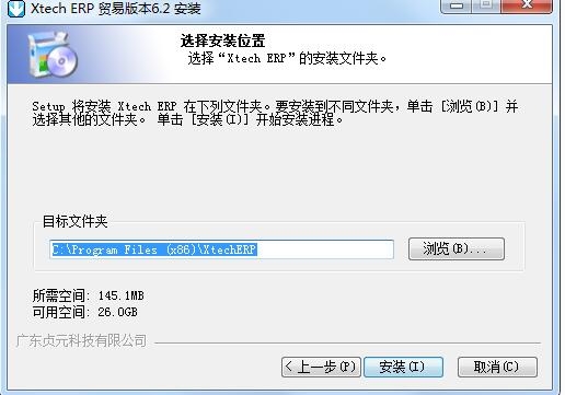 3、选择安装位置,默认的是“C:program Files (x86)XtechERP”,想修改点击浏览,点击“安装”