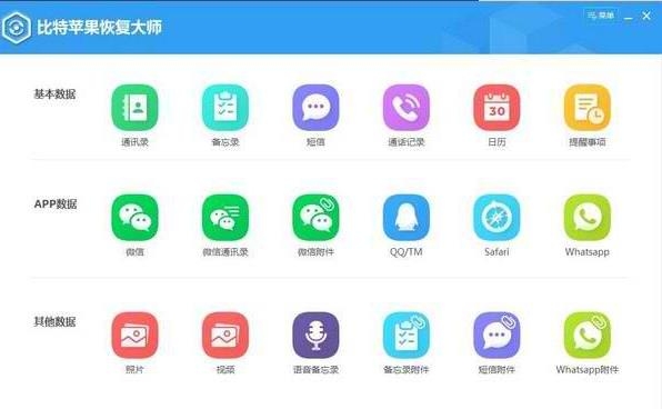 2、2大模式 18种数据项:通过扫描iOS设备直接恢复,通过iCloud/iT备份恢复,支持18种数据项备份与恢复;