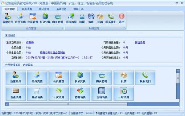 亿智达会员管理系统最新版是款界面简洁大方且操作非常简单的会员管理工具,亿智达会员管理系统最新版拥有丰富的功能,拥有会员管理、会员消费、统计查询、系统设置、常用工具等选项,亿智达会员管理系统是将会员消费、储值、积分、打折、会员基本信息管理、统计报表多功能于一身的会员管理软件。