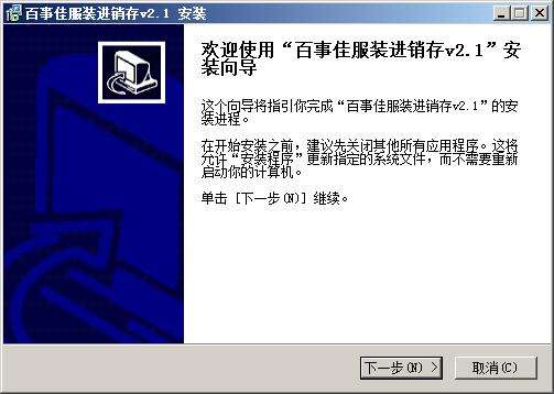 1.下载解压,并运行百事佳服装店收银软件电脑版.exe,点击下一步