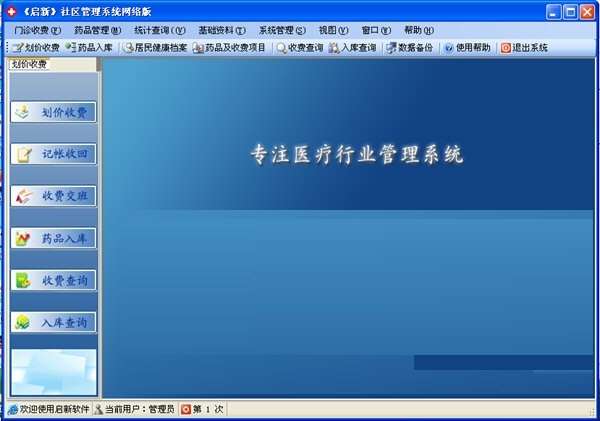 启新社区管理系统官方版是款非常严谨专业且功能十分丰富实用的社区诊所管理工具,启新社区管理系统官方版内置一些实用的功能,具有门诊收费、药品管理、统计查询、基础资料、系统管理、划价收费、药品入库等功能模块,启新社区管理系统自带四五千种药品信息,可以直接修改,提高操作速度。