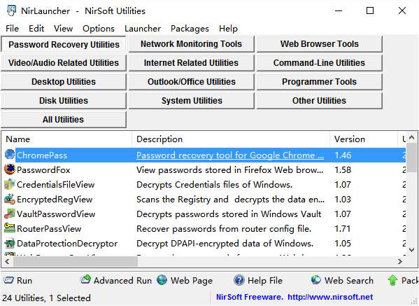 nirlauncher综合型的工具集合体,大大小小的软件多达百种,不过容量都很小,但是其功能都是十分实用且强大。本身也是免安装的,你可以将它存储在u盘中,就像是携带一个百宝箱一样。走到哪都不怕自己缺少工具。