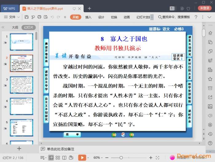 寡人之于国也ppt一等奖非常好用的教学课件,通过这款课件你可以灵活的教学内容跳转,帮助老师们更好的完成课堂上的教学任务。如果你需要欢迎来体验!