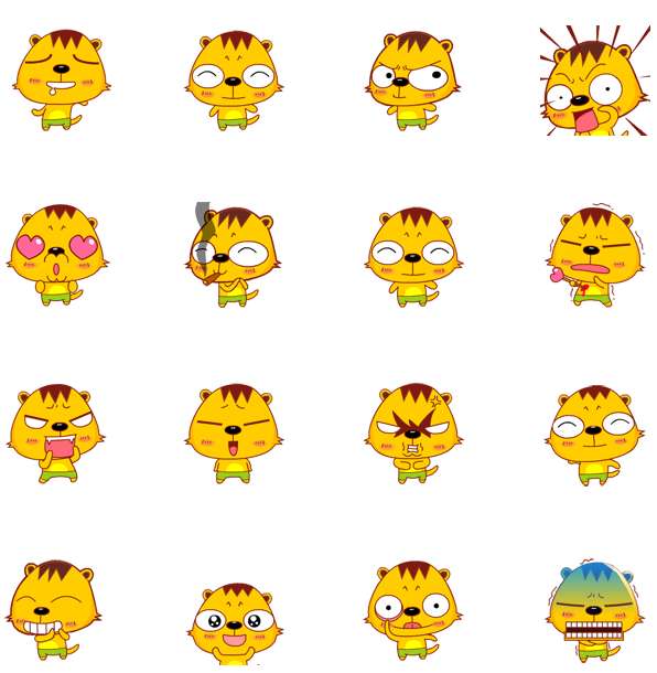 主要人物是一个长着厚厚头发的小男孩和一个长着粉红色头发的小姑娘。人物很小,但动物很可爱。表情有抓狂,小女猪,呲牙,好,要听话,摆手,兔诞老人,偷偷笑,同意,圣诞老人,怒走,你是猪,舔舌头,哭,恐惧,惊,搞怪男孩儿,搞怪女孩儿,脸红,大汗,nono.