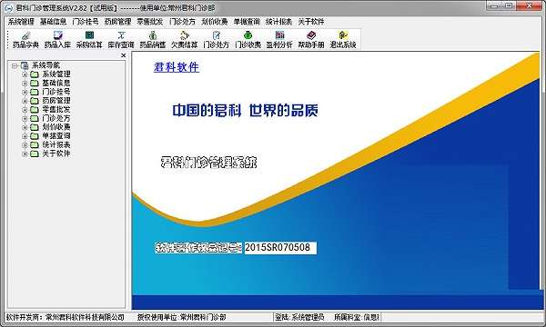 君科门诊管理系统官方版是款非常严谨专业且功能十分强劲实用的的门诊管理工具,君科门诊管理系统官方版主要用于社区门诊、门诊医院、私营门诊,门诊部等小型的医疗机构,君科门诊管理系统拥有强大的用户权限管理功能,该系统使用灵活,可以脱离挂号,直接开立处方,也可以直接脱离挂号处方,直接进行药品的发药收费。