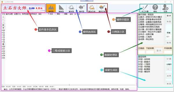 土石方大师官方版是一款集多图层、影像贴图、三维立体化展示、模型数据种类多样、成果快速生成、智能化操作计算等优点于一身的轻量级软件。适用于建筑物内部或外业场地的山坡、土堆、石堆、挖填区域等各类型方量计算。