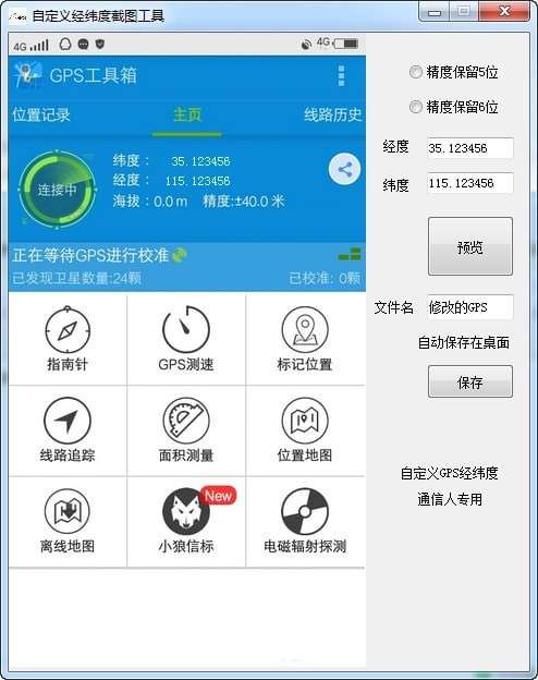自定义经纬度截图工具电脑版是款体积十分小巧,灵活实用的截图工具,自定义经纬度截图工具电脑版可以设定精度,设置经度和纬度数值,上手非常容易,其自定义经纬度截图工具可以模拟器手机的界面自定义经纬度并截图,十分的实用。