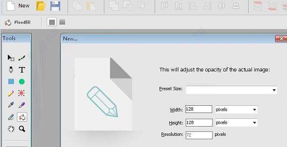 1、运行FlatIconMaker软件后,点击NEW按钮即可新建一个图标文件进行编辑,再出现的新建窗口内,使用者可以设置新建图标的像素大小。
