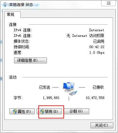 5、进入本地连接,我们点击禁用;