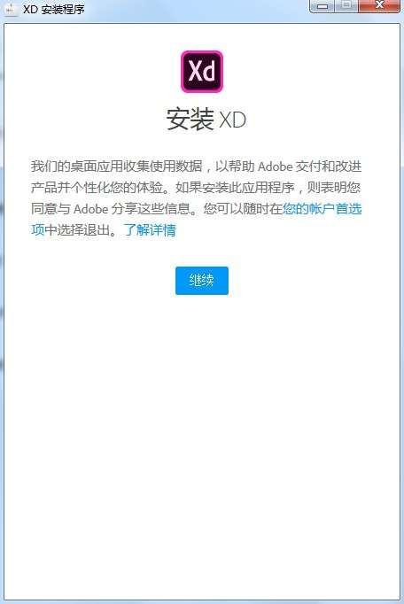 6、开始安装xd,点击继续;
